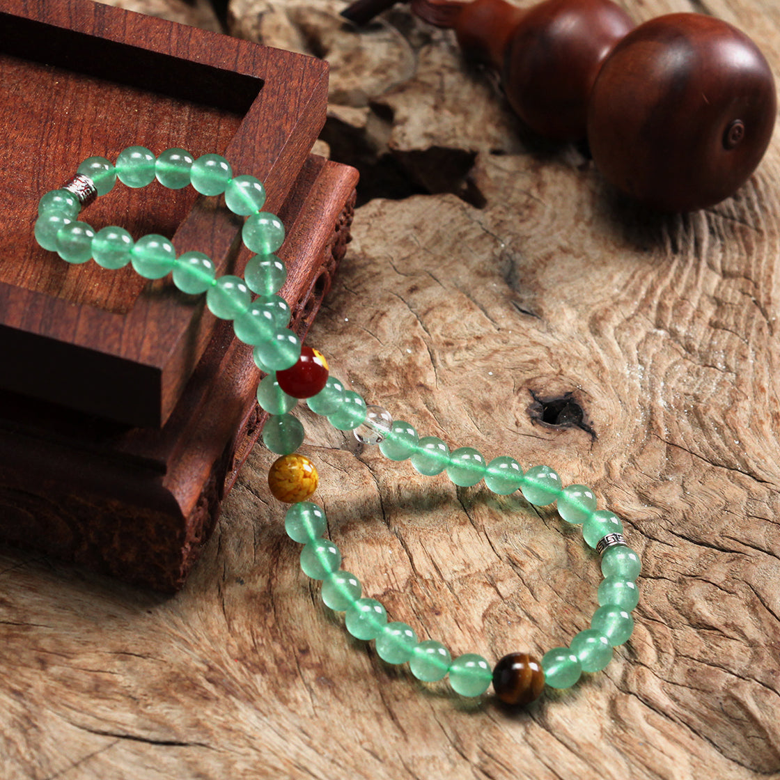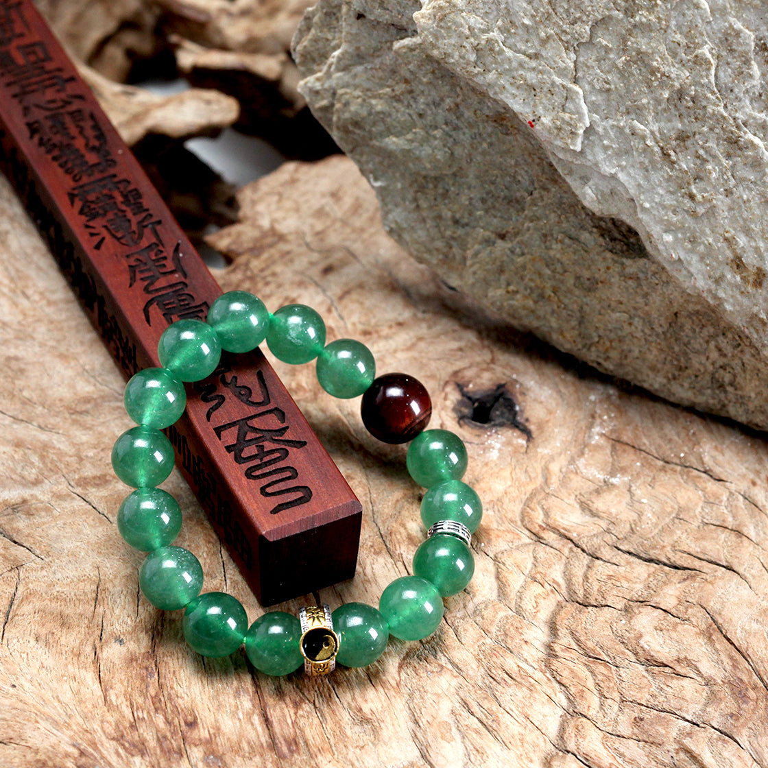 Taiji & Bagua Natural Ethereal Green Crystal Long Bracelet (Wood Element Energy)